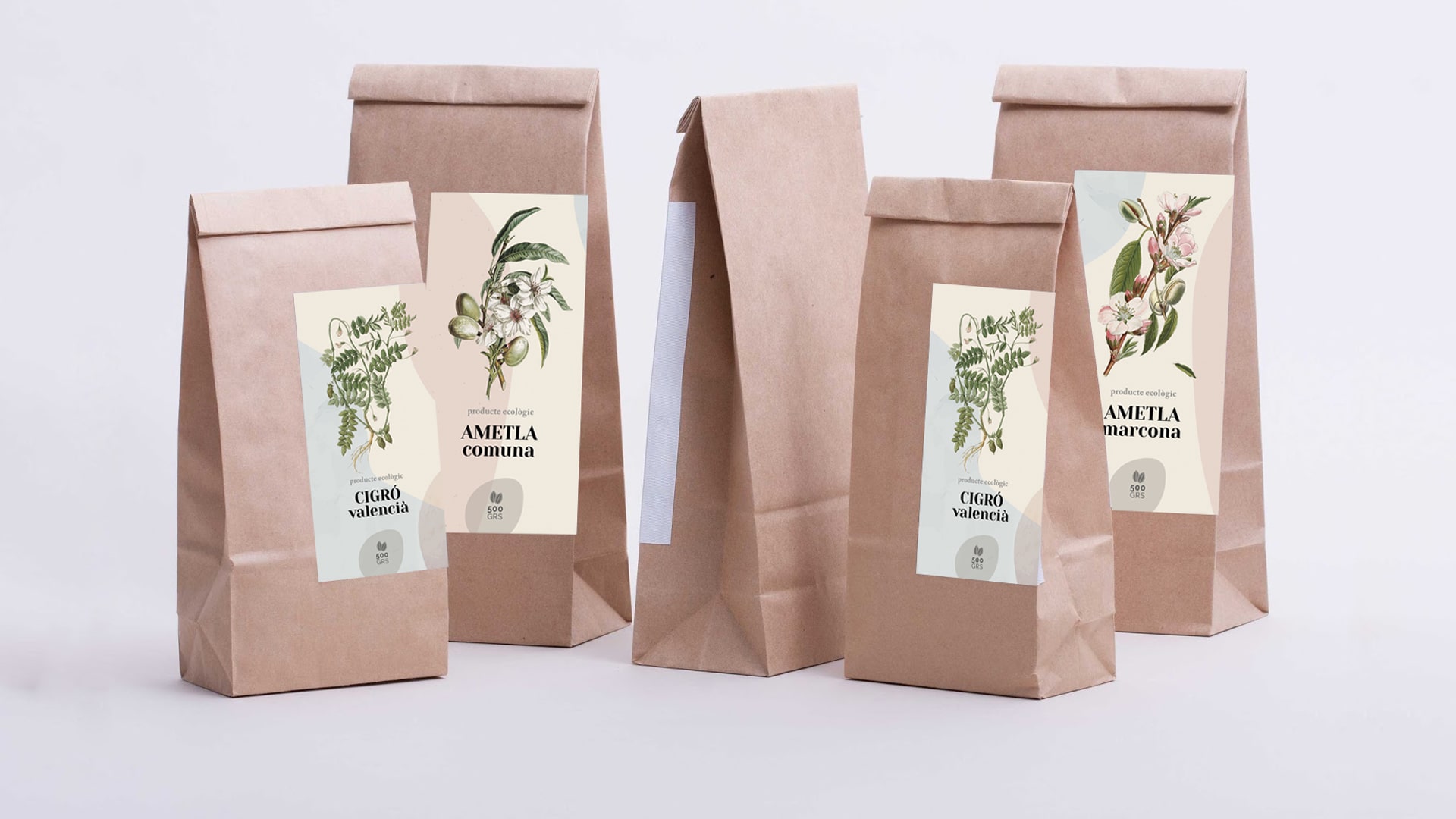 El diseño se realiza con unas ilustraciones botánicas para aportar un valor de naturalidad al producto. Se opta por un tamaño único para los tamaños de medio kilo y de kilo.